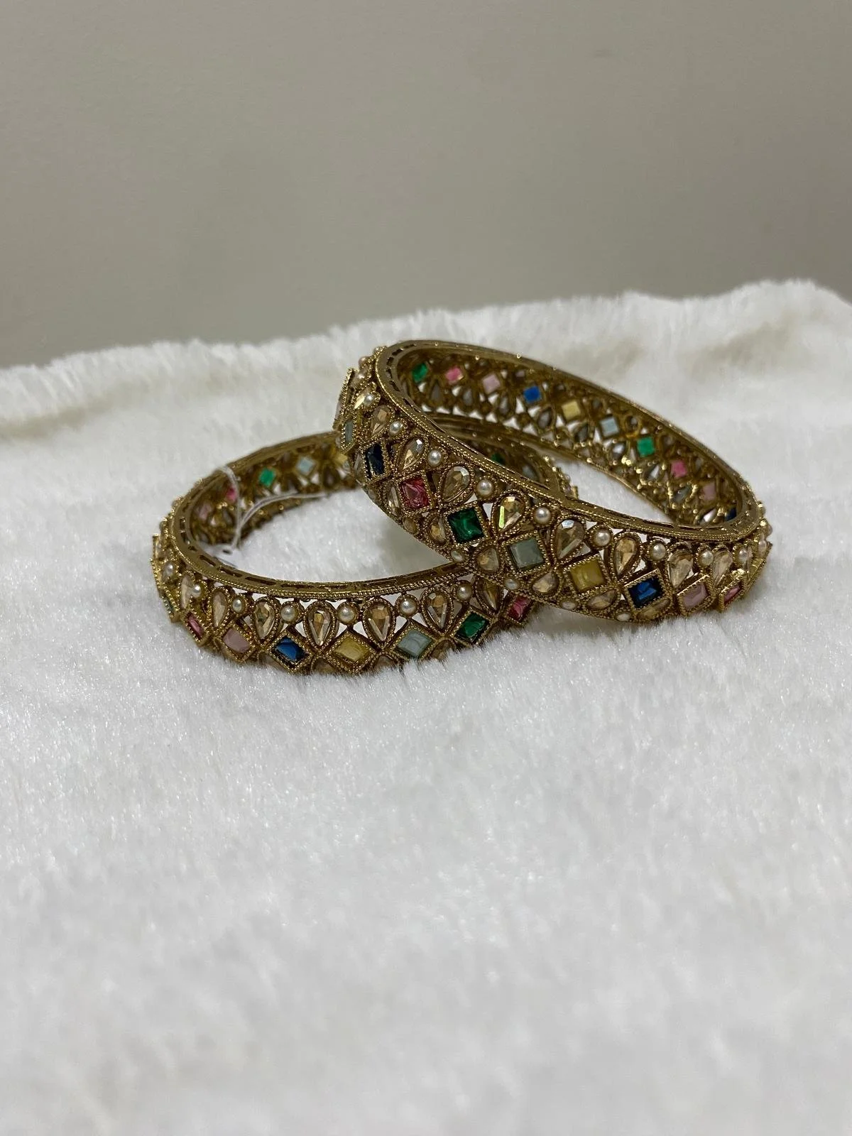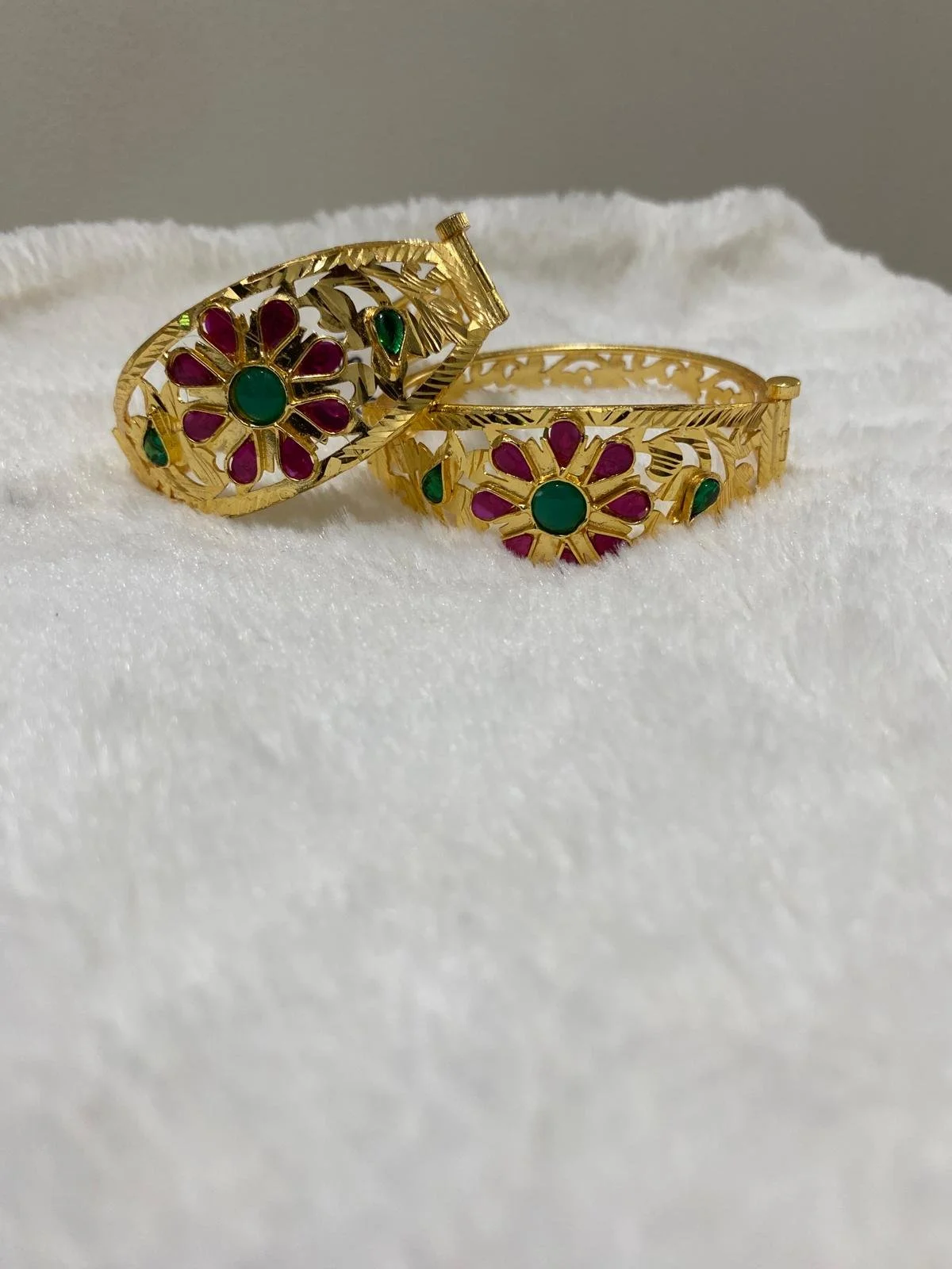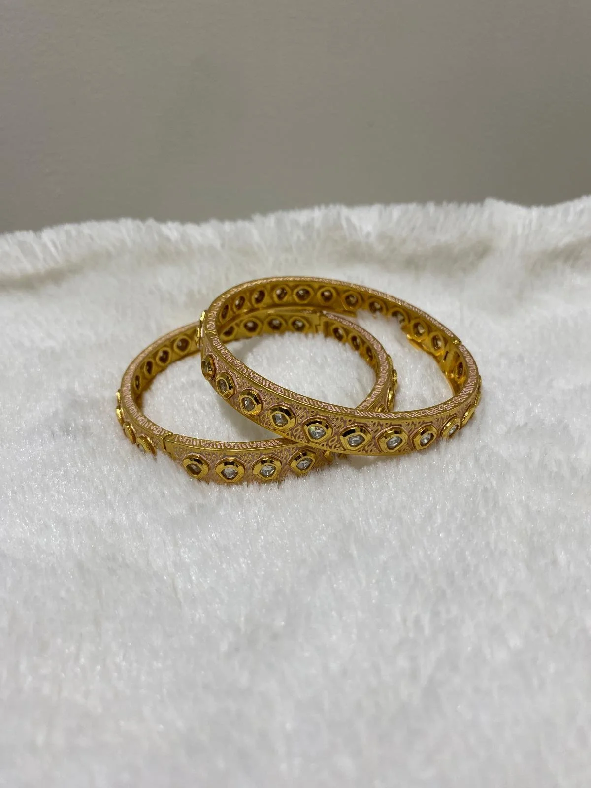Rose Gold Multi Bangles $30.00 Polki Jumki Bangles $40.00 Multi Gold Plated Bangles $45.00 Rose Gold Flower Design Bangles $30.00 Gold Plated Bell Bangles $30.00 Polki Multi Bangles $45.00 Polki Openable Bangles $40.00 Pink Meenakari Kundan Bangles $50.00 Gold Plated Bangles $50.00 Jadau Kada $45.00 Matte bangles with meenakari $15.00