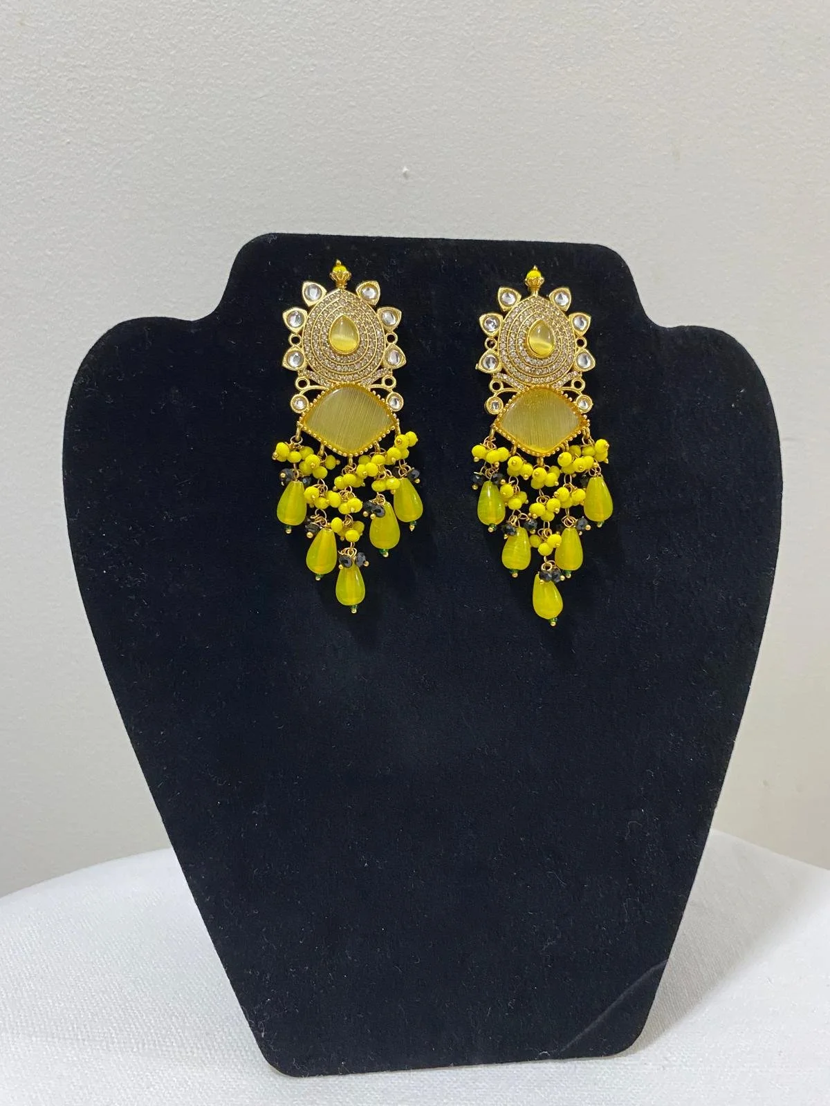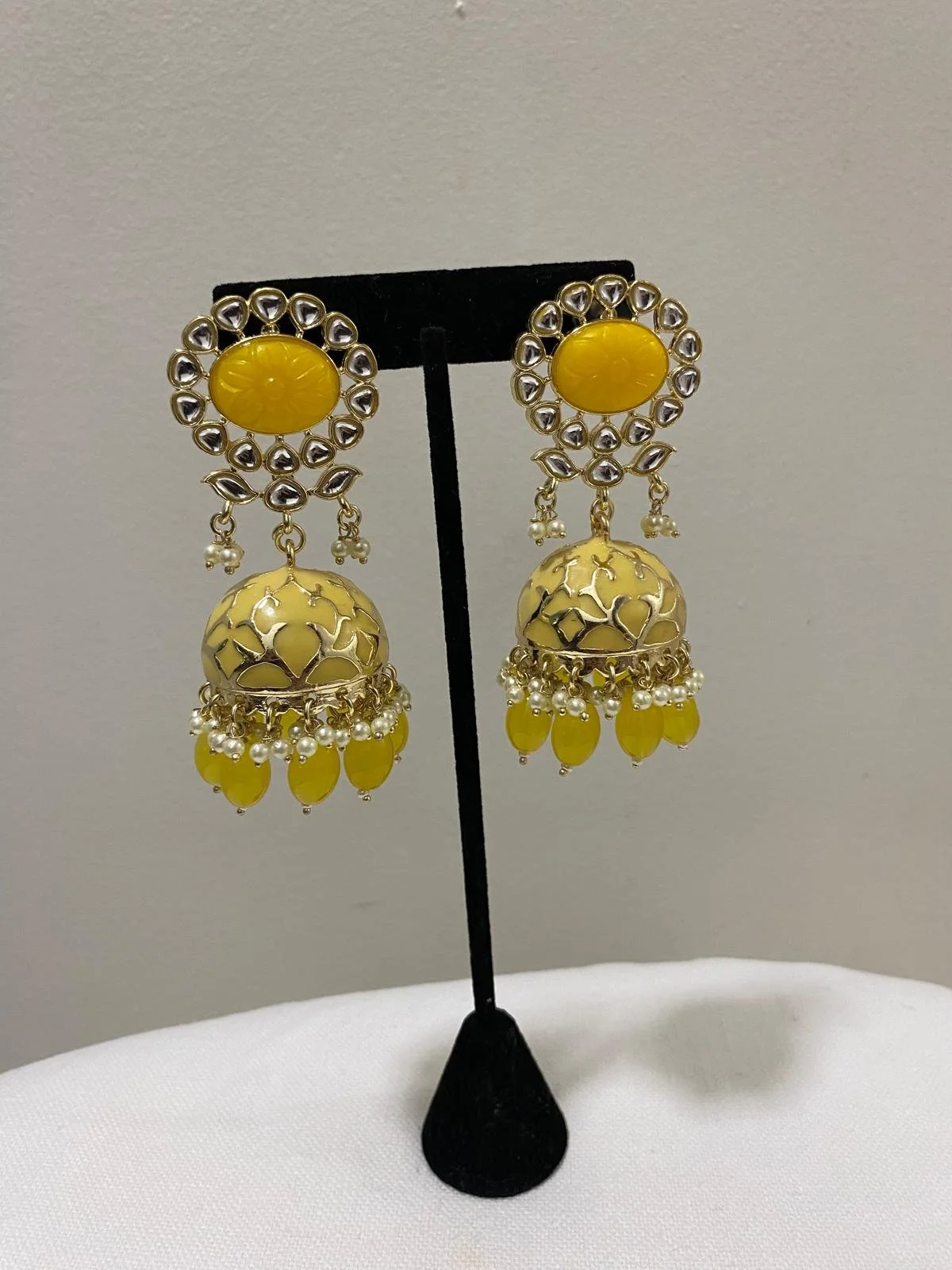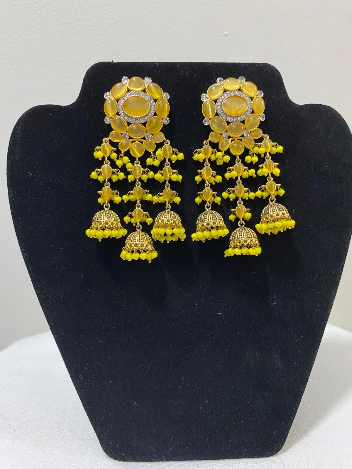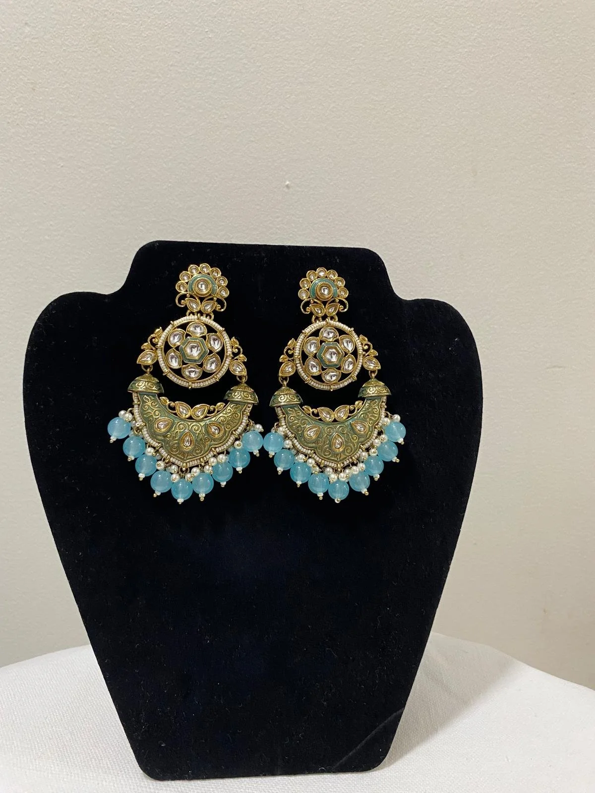Kundan Lion Earrings $15.00 Kundan three layer Magenta Jumki $15.00 Kundan and Meenakari Earrings $15.00 Mona Lisa Stone Yellow Hanging Studs $15.00 Multi Earrings in Kundan $20.00 Curving Stone Jumki $15.00 Moissante Green Earrings $30.00 Wine and Pink Meenakari Jumki Wali $20.00 Maroon Curving Stone Earrings $20.00 Kundan Multi Earrings $15.00 Multi Earrings with Curving Stone $20.00 Mint Green Kundan Eaarings $15.00 Elephant Polki Earrings with Crystal Beads $20.00 Meenakari Blue Earrings with Sahara $15.00 Lavender Crystal Bead Earrings $20.00 Kundan Long Earrings $20.00 Long Hanging Jumki Multi Earrings $15.00 Kundan Light Blue Earrings with Meenakari $20.00 Pink and Red Meenakari Jumki $15.00 Kundan Multi Jumki with Sahara $15.00 Peacock Earrings Multi Jumki $25.00 Kundan Hanging Studs $15.00 Kundan Maroon Jumki Earrings $15.00 Mother of Pearl Gold Earrings $15.00 Long Hanging Jumki Earrings $20.00 Jadau Earrings with Jumki $15.00 Victorian Polish Jumki in Baby Pink $20.00 Yellow Mona Lisa Stone Hanging Studs $20.00 German Silver with Curving Stone $45.00 German Silver long Earrings $45.00 Ruby bells earrings $40.00 Multi earrings with bells $45.00 Long jumki with bells $35.00 Multi bell earrings with birds $40.00 Emerald stone bell earrings $35.00